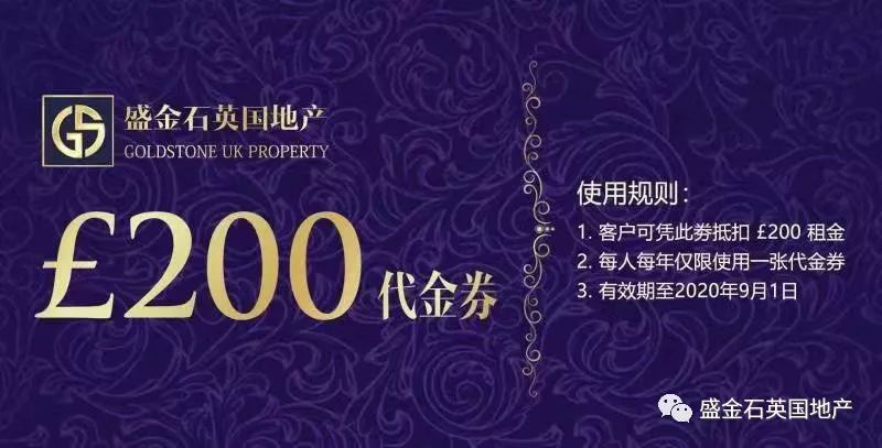 另外,这里还为各位想要租房的朋友们准备了盛金石租赁代金券,抵扣£200租金。